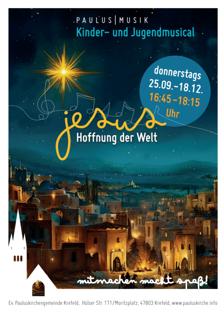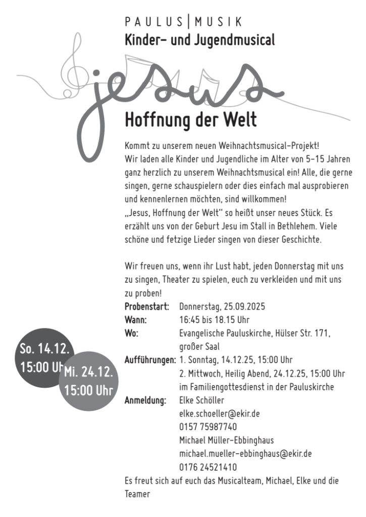 Adresse der Kirche: Pauluskirche, Hülser Straße 171, 47803 Krefeld. Telefon: 02151-753785.