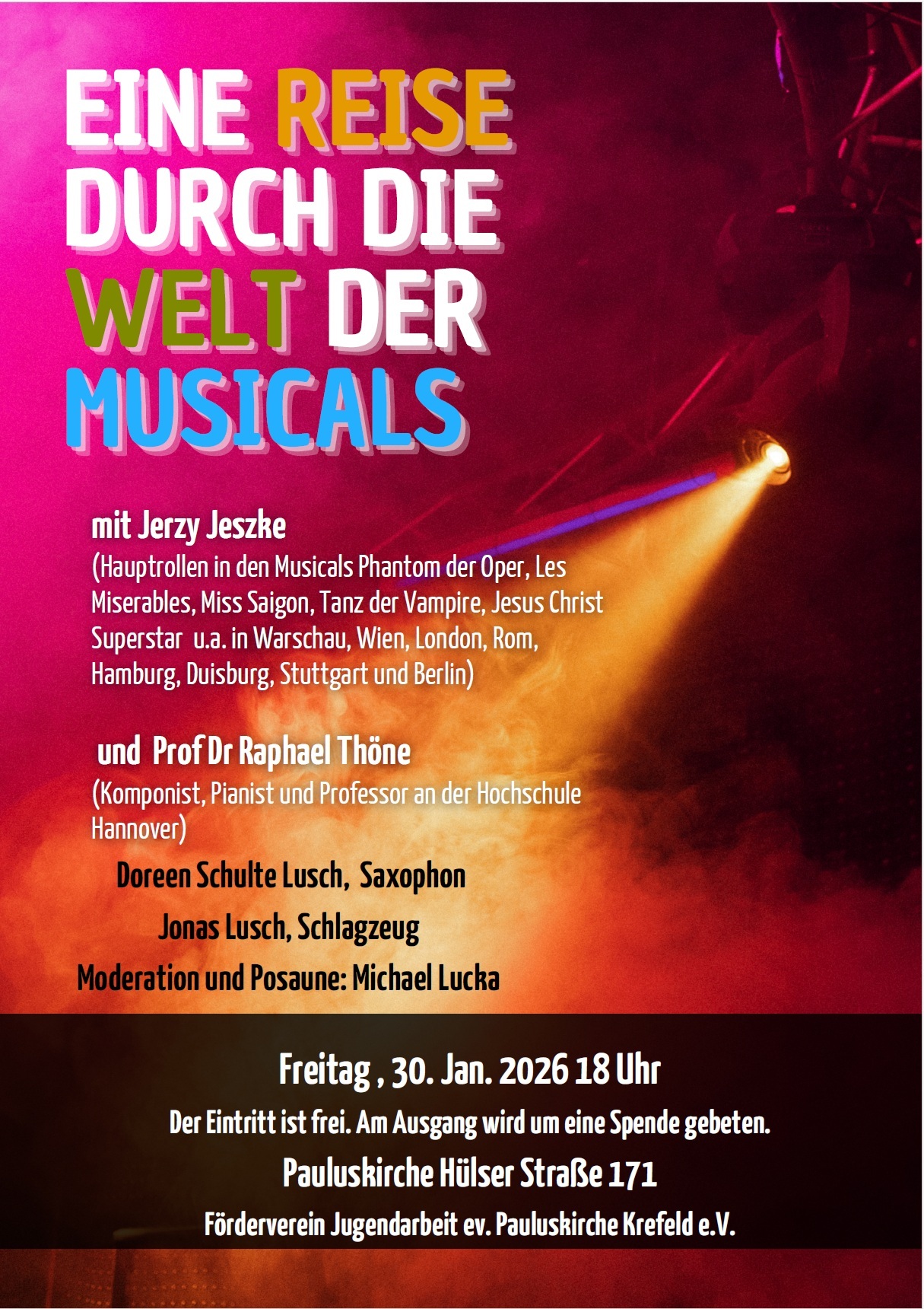 Der Förderverein Jugendarbeit der Pauluskirche lädt zum Konzert : “ Eine Reise in die Welt des Musicals“ ein